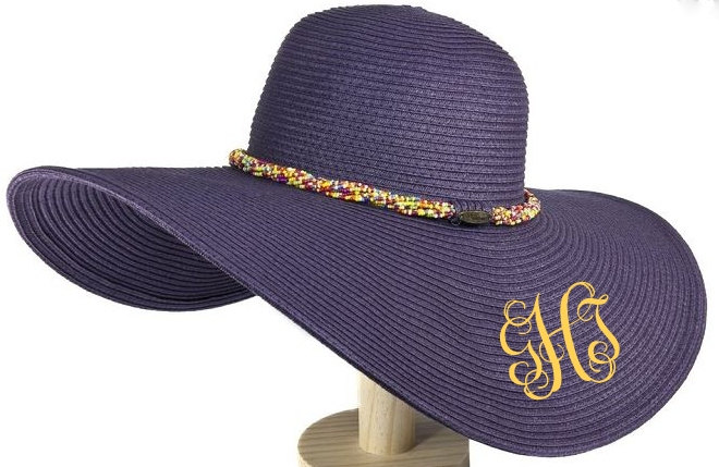 Monogrammed Floppy Hat - Beaded Wide Brim Sun Hat