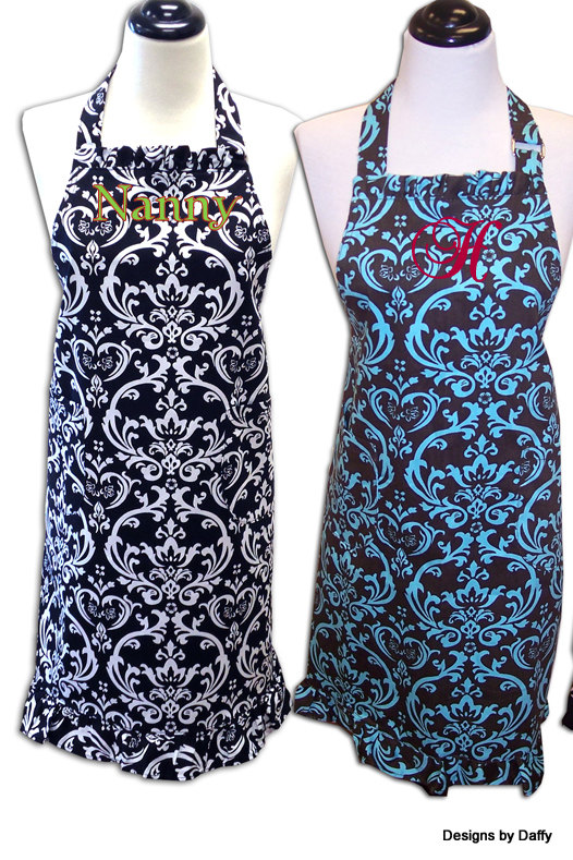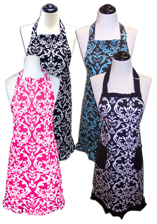 * Color Apron - black and white damask, black and white w/black trim, fuschia and white, or brown and blue damask