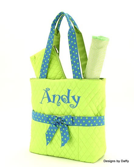 Oh, no! Your baby is in need of a diaper change! This three piece Diaper Bag would be very convenient! There is a baby changing pad and mini zipper case that is included. The set is highly practical and trendy. Quality quilted diaper bag customized with first name, initial or monogram.
