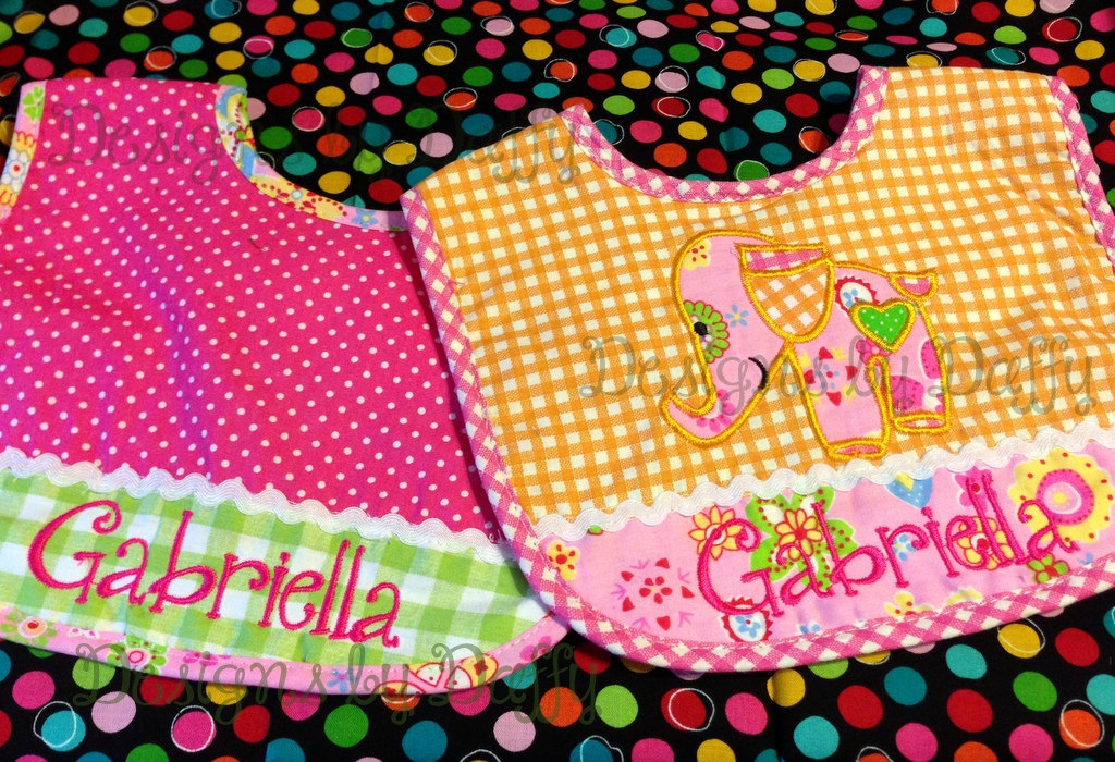 This adorable personalized coordinating bib set is a super nice set for your own little one or to give as a gift to the new mom!