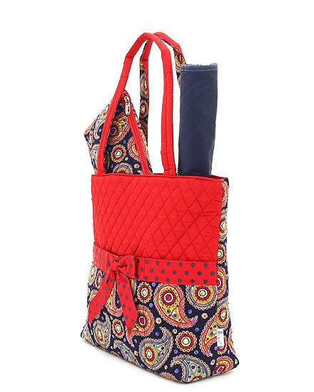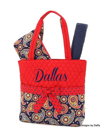 Navy Red Paisley Pattern Quilted Personalized Diaper Bag