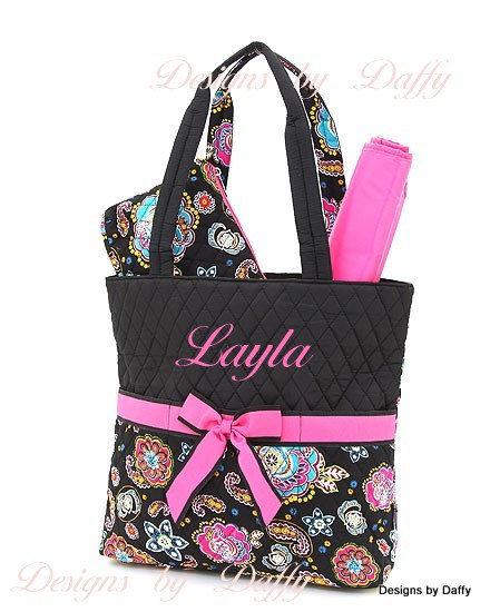 Oh, no! Your baby is in need of a diaper change! This three piece Diaper Bag would be very convenient! There is a baby changing pad and mini zipper case that is included. The set is highly practical and trendy. Quality quilted diaper bag customized with first name, initial or monogram.