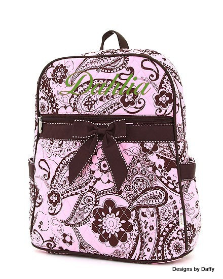 Monogrammed Backpack Quilted Personalized Large Paisley Flower