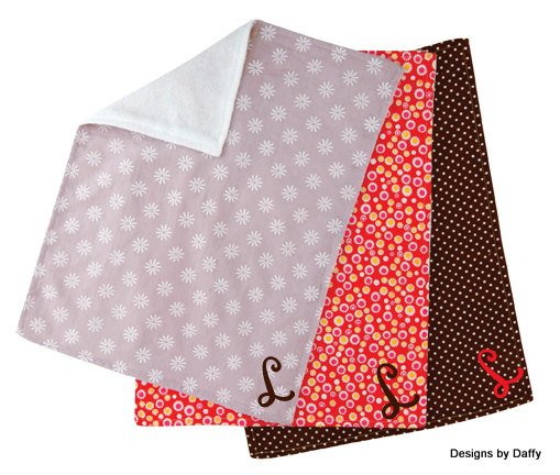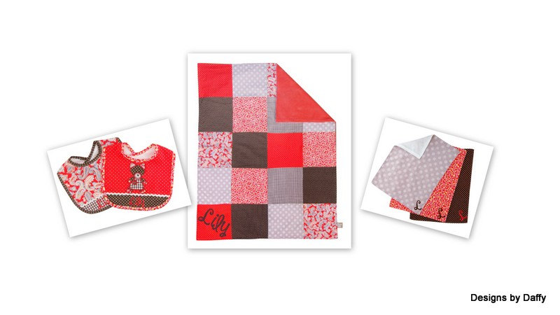 This adorable personalized coordinating quilt, bib and burp cloth set is a super nice set for your own little one or to give as a gift to the new mom!