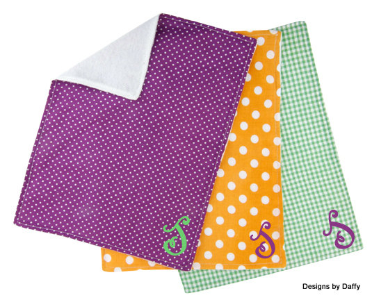 3 coordinating burp 10" x 13" burp cloths