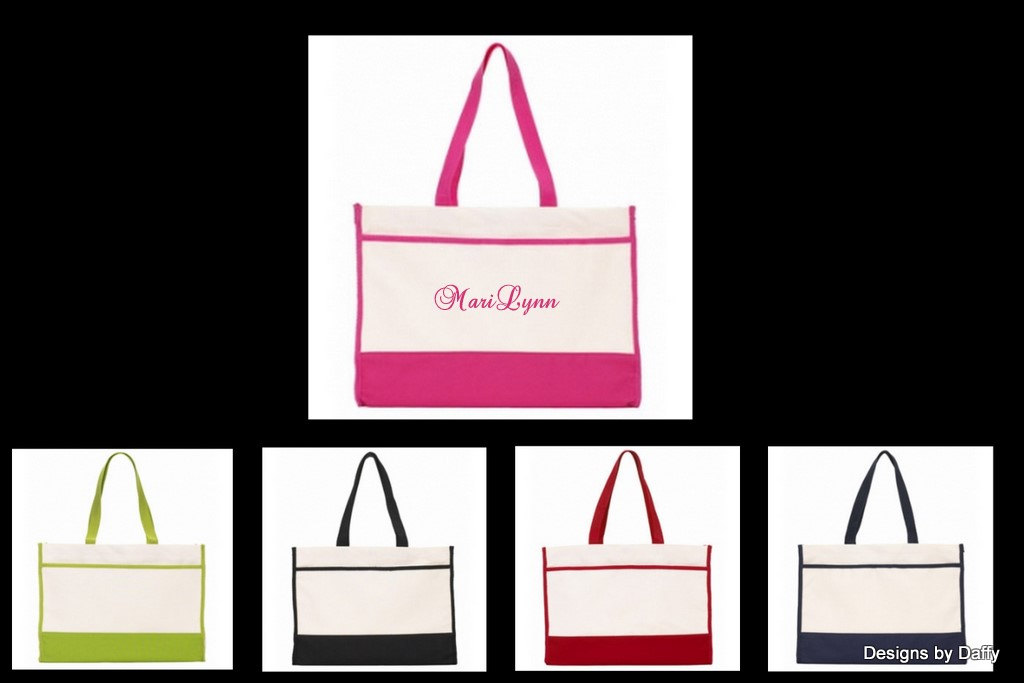 Personalize this canvas tote with your choice of name, initial, or monogram. Please provide monogram in the following order when ordering: