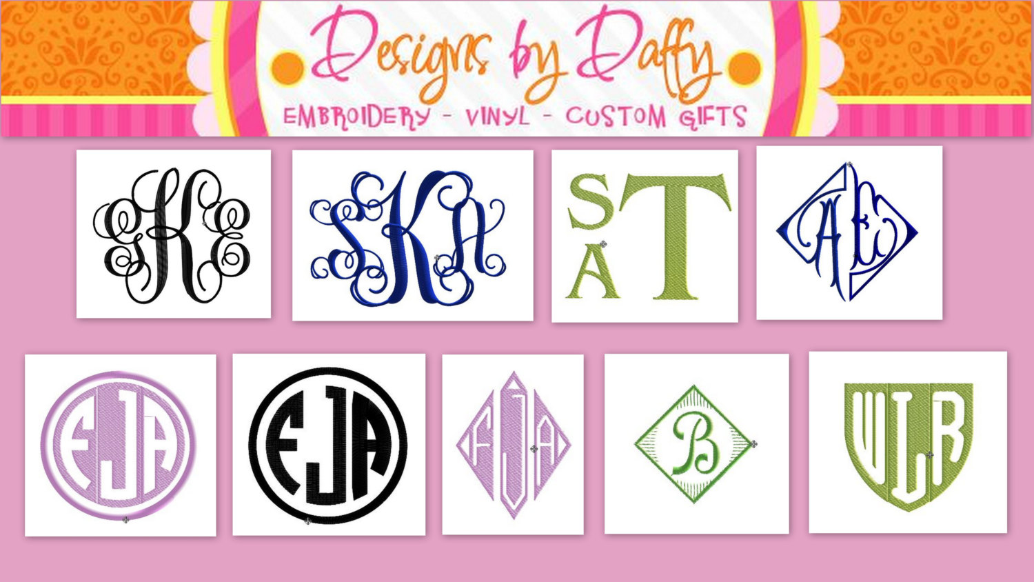 Please click the other photos above to choose font. Any embroidery color is available, please specify with the monogramming and font details in the comment section when you checkout. Thanks for your business and helping make Designs by Daffy a success this past year!