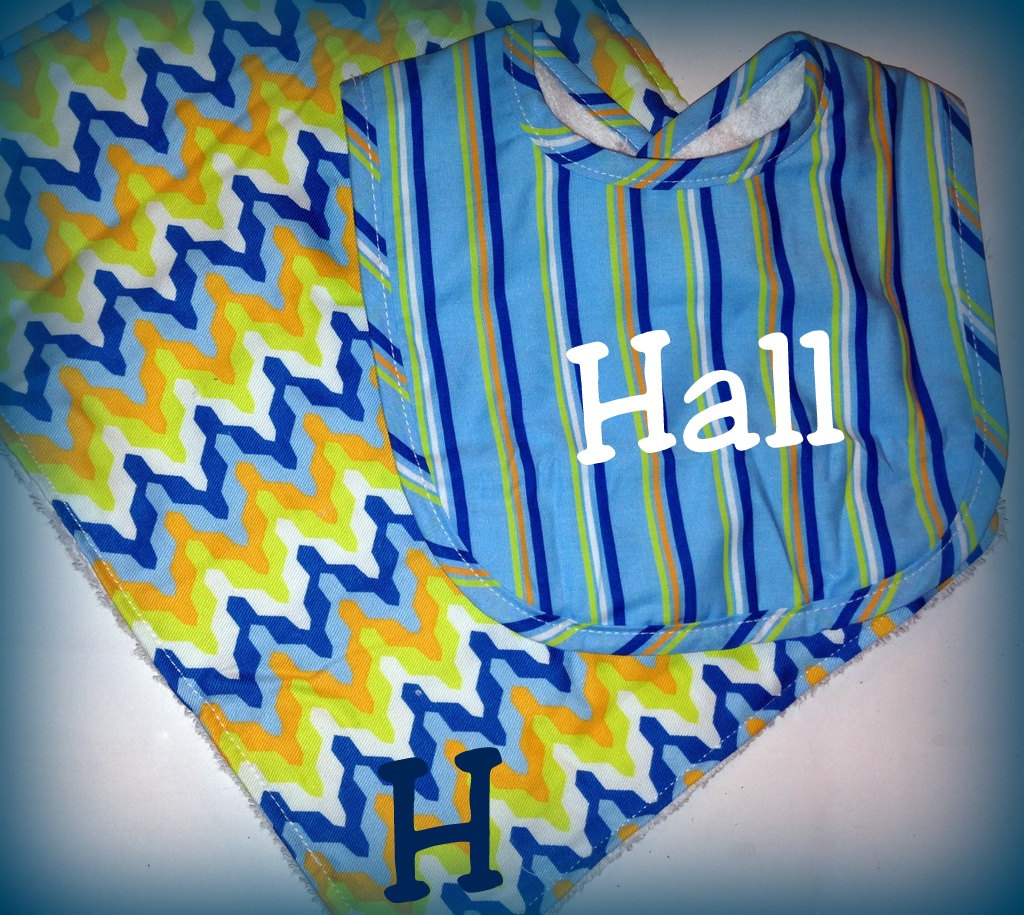 Personalized Embroidered Bib Burp Cloth Sets - Chevron and Stripes