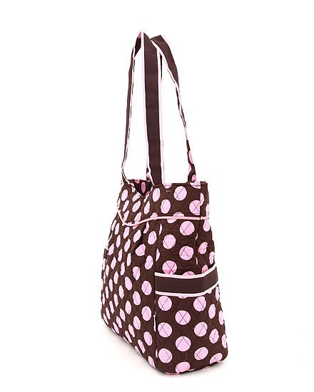Super cute large quilted polka dot tote bag. Very popular style, now at a great closeout price!! Can't beat this is sale.