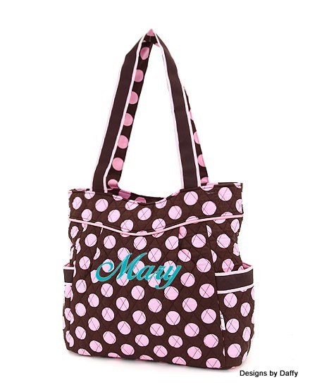 Monogrammed Quilted Tote - Polka Dot